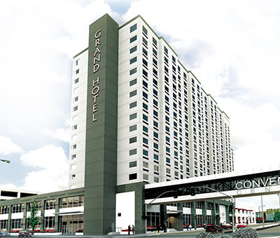 The Grand Hotel Spokane is Spokane, Washington’s largest hotel. The 15-story convention hotel has 716 rooms and includes a 900-car parking garage with 62,500 square feet of meeting and exhibit space. The Convention Center and INB Performing Arts Center are connected to the Hotel via the skybridge. The Spokane Veteran’s Arena, River Front Park, Spokane River and Centennial Trail are all within walking distance.